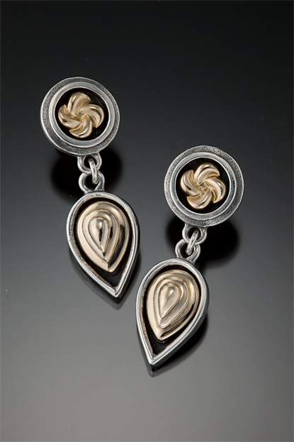 K238K239P2Size: 1 1/4” H x 3/4” W Sterling silver earrings shown with 14k gold filled inlays. Surgical steel posts. sterling silver earwires available. See stone chart for available stones. $198.00 |