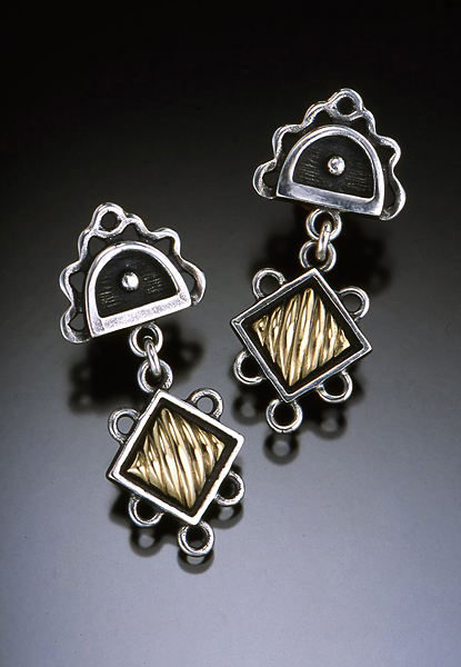 Sterling silver earrings shown with 14K gold filled inlay. Surgical steel posts. Sterling silver wires available.