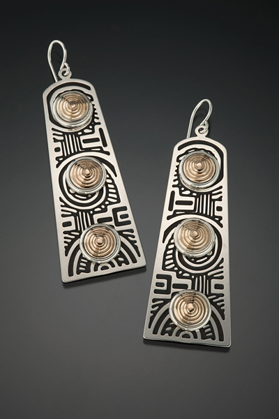 S63GF-2013Size: 2” H x 3/4" W Sterling silver shown with 7 mm 14k gold filled inlays. Surgical steel posts and Sterling silver earwires available. See stone chart for available stones. $198.00 |