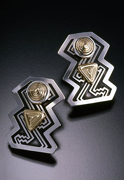 S79P2Size:1 ¼” H x 7/8” W Sterling silver earrings shown with 7 mm and triangle 14K gold filled accents. Surgical steel posts. Sterling earwires available. See stone chart for available stones. $169.00 |